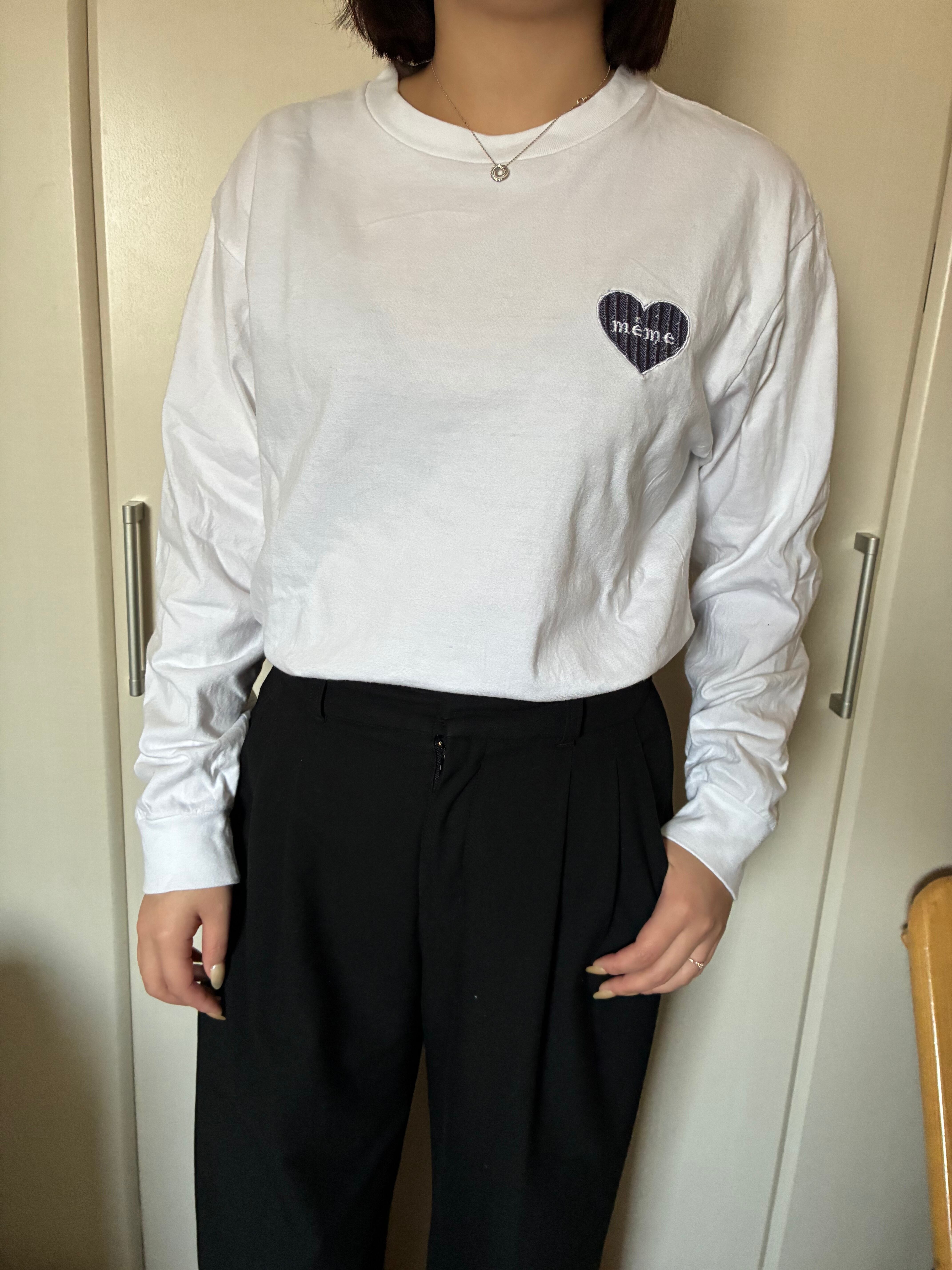 胸元のシンプルなハートの刺繍は、主張しすぎないのに ちゃんと可愛い⸝⋆⸝⋆